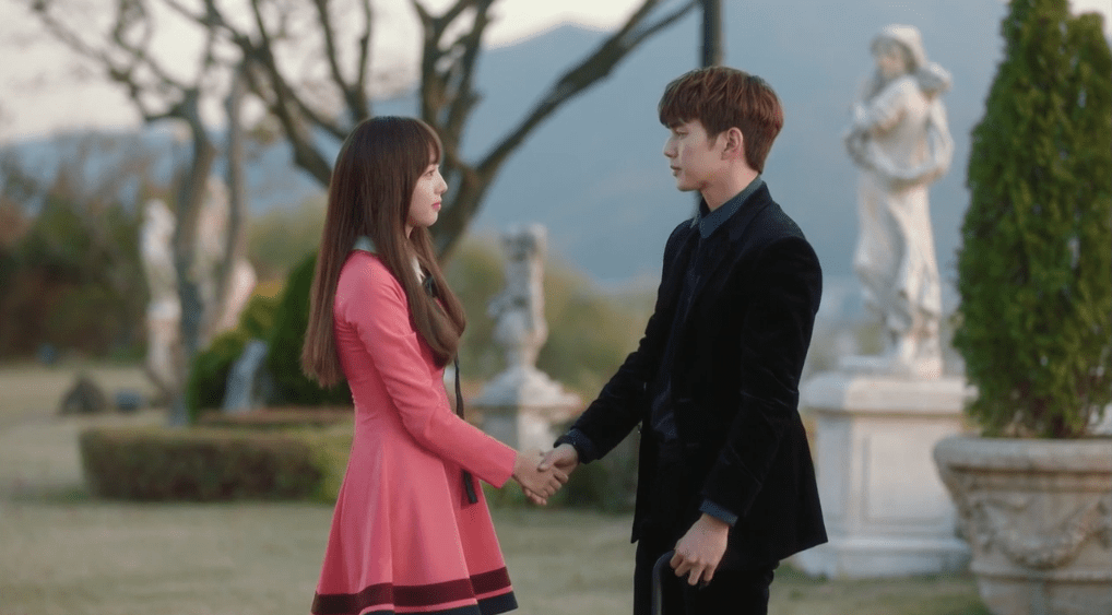 If you’re under the impression a drama filmed during the winter would have dull scenery, think again. There’s lovely, fresh snow in the background of many shots throughout the last few episodes, a trip to a quaint harbor sea town, and Min-Kyu’s jaw-droppingly beautiful mansion complete with a tremendously huge card castle and a bookshelf where Aji 3 has arranged the books into the shape of a giant heart. Sadly, there is one outside scene near the end where you can tell it wasn’t really filmed outdoors. It looks like it was shot inside a studio with a green screen behind the actors. There’s always the possibility I’m wrong, but that’s what the meteorite storm scene looked like to me.