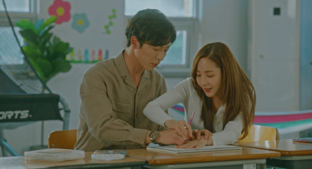 Most of the show takes place in the art museum and the homes of Deok-Mi, her parents, and Ryan Gold. There’s one fun scene at an amusement park but the most romantic scenes are in two very unlikely places – the back room of a carpentry shop and a secluded driveway/alley sort of spot.